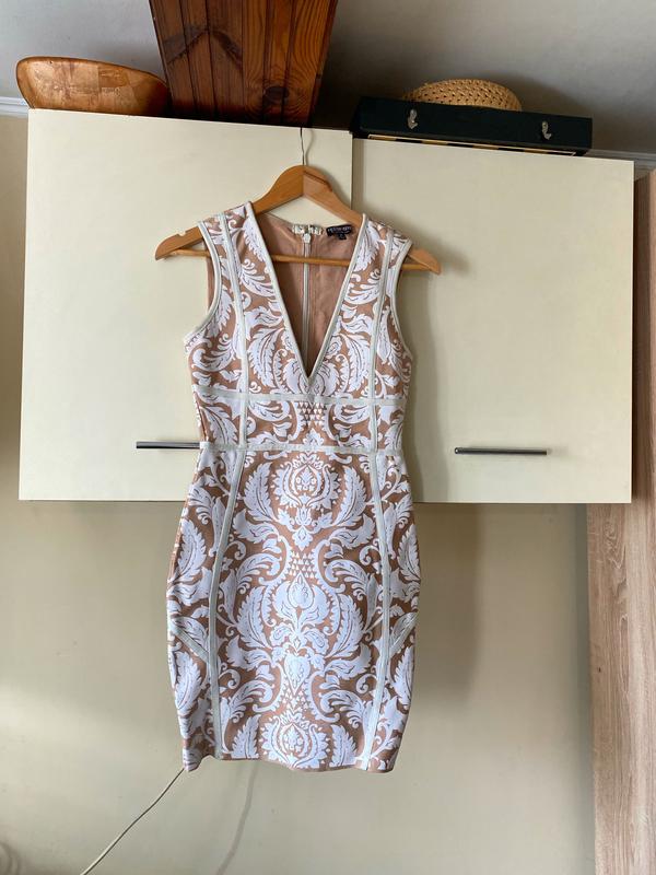 Платье мини бандаж, платье из плотной ткани, бежевое платье