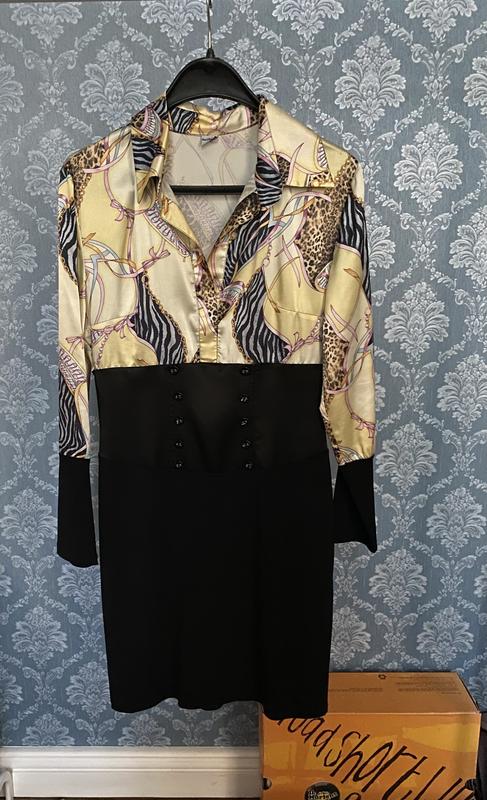 Елегантна офісна сукня. Атласний ліф, спідничка з мокрого трикотажу, оригінальні розклешені манжети. Абсолютно нова. Привезена з Італії. Підійде на наш 46-48 розмір. Обʼєм грудей 100 см