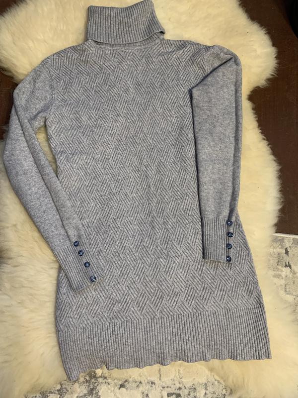 Тепле плаття туніка сірого кольору, с горловиною . Длина 83 см, пог 50-66 см, пот 42-60, поб 50-66. Рукав від плеча 62 см. Горловина 22 см