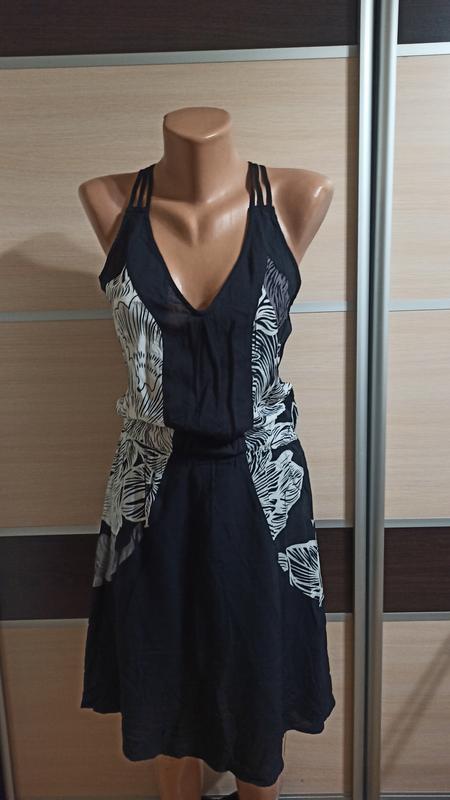 Вказано розмір 10 Довжина 91см ПОГ 44-45см ПОТ 29-45см ПОБ по під'юбнику 40-48см( зверху до 59см) Віскоза, підкладка нейлон, еластан