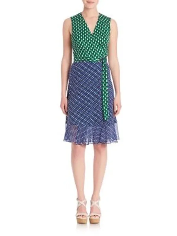 Модель : фірмова гарна сукня Diane Von Furstenberg на запах . Розмір: 6 M Стан: дуже хороший, має зачіпку і нюанси під пахвами . Склад: 100% шовк Заміри: довжина від плеча 91 см, ПОГ 42 см, ширина плечей 34 см, ПОТ 38 см, ПОБ 54 см Ціна: 499 грн