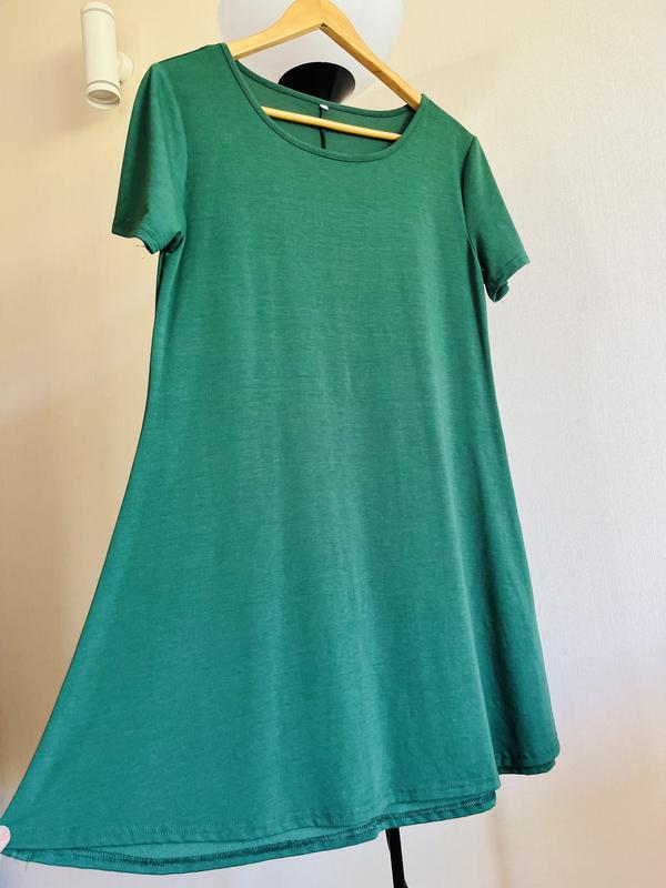 Летнее платье свободного кроя в красивом изумрудном цвете 💚 65% коттон, 35% полиэстер. Размер пишет С, да будет и на М. Замеры: длина 84, ПОГ 47, талия 44, ширина по низу 69.