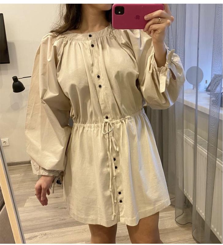 Бавовняне плаття відомого Іспанського бренду ZARA {Зара}. Виріб з круглим вирізом і довгими широкими рукавами з зав´язками. Регульований пояс на шнурку. Застібається на гудзики. Склад: 100% бавовна Заміри : довжина 78см, ширина 55см , рукав від горловини 61см
