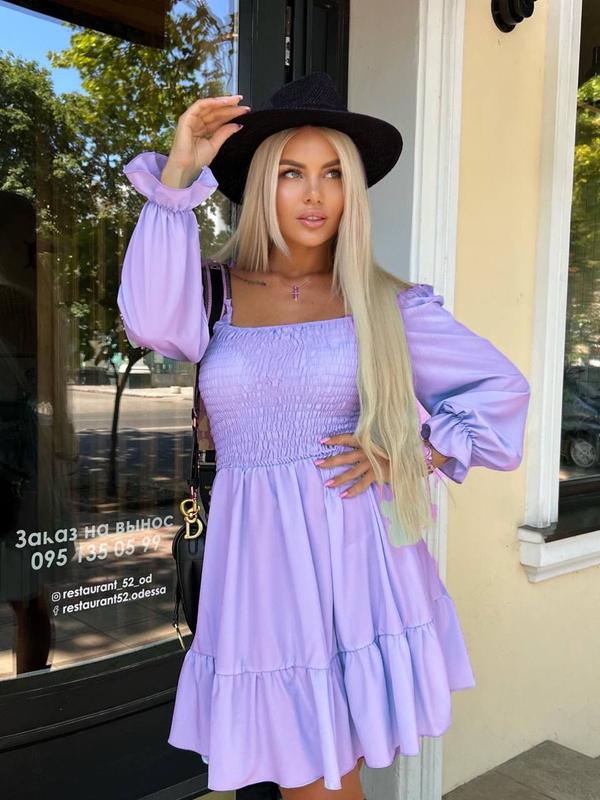 Сукня 😍😍 📌Розміри: S, M, L, XL 📌Тканина: софт, приємний на дотик 📌Кольори: блакитний, беж, лаванда, малина, трава та чорний Модель дуже стильна, легка, ідеально підійде під різне взуття, зі стильною в цьому році настрочною резинкою по грудях. Супер якість