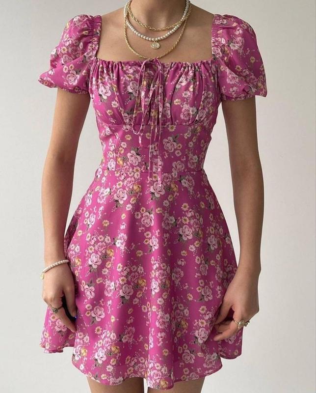 🔝Плаття з квітковим принтом🔝 преміум якість (Виробництво Туреччина🇹🇷) фото реал розмір s m l довжина 77 см тканина кріп шифон на підкладці ціна 810 грн