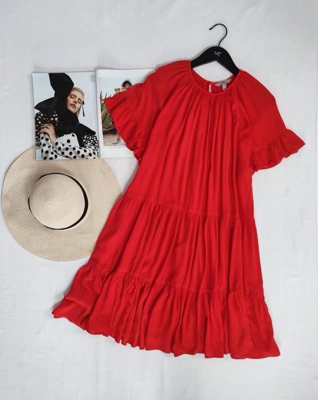 🌿червона сукня від H&M вільного крою, тканина текстурна віскоза Розмір:L Заміри:ПО грудей 53 см, довжина 94 см