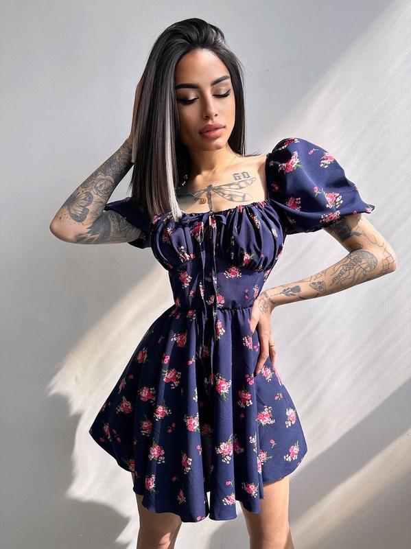 Сукня- міні у квітковий принт ▫️ціна 830 грн ▫️тканина: софт ▫️розмір: S та М