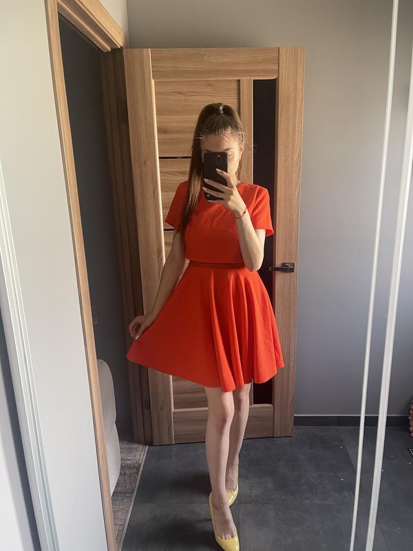 Помаранчева яскрава сукня, дуже цікавого пошиття , приємна тканина