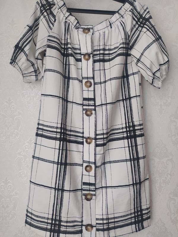 Продам стильне плаття з бавовни в ідеальному стані, розмір М, L. Рукав ліхтарик, зверху резинка можна робити відкриті плечі. Бренд вказаний для привернення уваги!!! ПОГ-49см ПОТ-51 см Довжина-84 см Довжина рукава-35 см