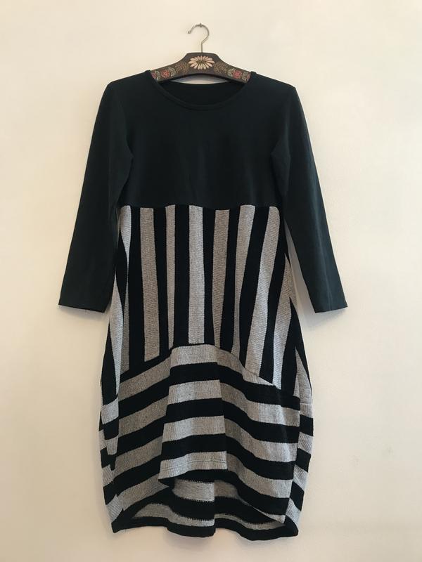 Стильне плаття. Усі бирки є. Добре тримає форму та приховує вади фігури Верх щільний котон,низ як тканина для в'язання светра. (м'який і щільнуватий) Без підкладки та дефектів. Довжина від плеча 98 Плечі 43 Рукав 55 Пог 45-55 Піт завищений 43-52 НОС 56-69 Доставка Укрпошта та Нп, безпечної оплати немає, читайте відгуки покупців і розділ про продавця