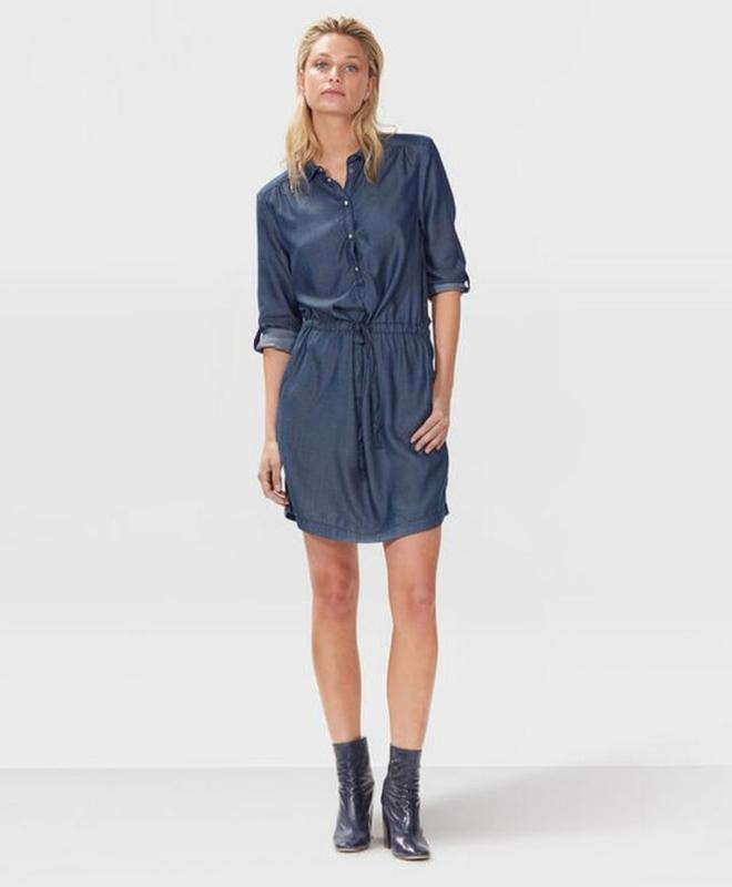 Джинсова сукня котонове плаття з ліоцела з довгими рукавами на кулисці по талії натуральне...