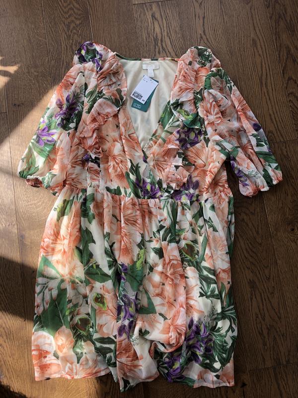 Гарне яскраве плаття, нове без бірки , розмір М, але буде і на Л Довжина 85 см Пог 50 см ( можна більше бо йде як на запах) Шов по талії ( не резинка) 50 см В бедрах широко Шифон з підкладкою