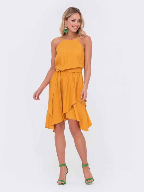 💛Стильна сукня з льону «жатки» на вузьких бретелях, що регулюються. Модель з американською проймою. Розкльошена спідниця з асиметричним подолом, доповнена широким воланом. У поясі передбачена еластична деталь. Тканинний пояс у комплекті. ✔Розмір:44,46,48,50 ✔довжина виробу – 86 см 🧵Склад: 65% льон, 20% поліестер, 15% віскоза 🌈Колір: жовтий 🧵Матеріал: Білизна "Ятка" 💳Ціна 1250грн Арт43782 ‼️Кількість обмежена ‼️