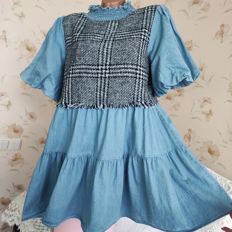 Брендове фірмове ярусне плаття. Виробництво Туреччина. Має приголомшливий, дуже стильний та ефектний вигляд. Комір-стійка на гумці, рукав "ліхтарик" на підкладці. Тканина середньої щільності. На бирці розмір L, В плечах 34 см, довжина рукава від плеча 30 см. Ближче до оригіналу колір на фото 6-9. Стан ідеальний. Сліди носіння немає. Дефектів немає.