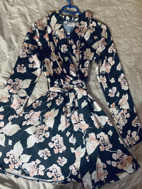 Плаття з гарним квітковим принтом. Приємне до тіла. Розмір S. Довжина-82+-см Рукав-