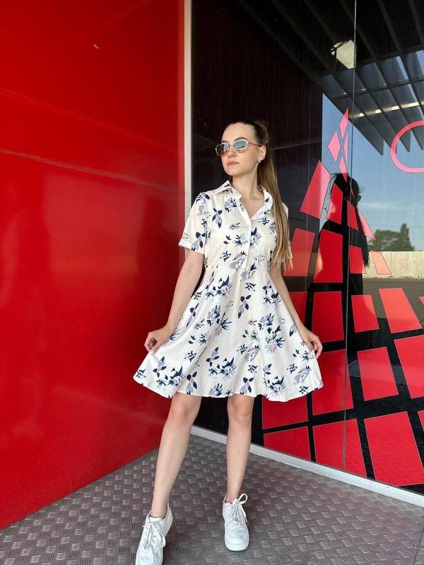 Платье принт цветочек Размер 44, 46, 48 Цвет голубой, розовый, салатовый, белый