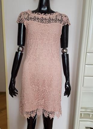 Плаття мереживо, ідеально сідає на фігурі, гарний пудровий колір.