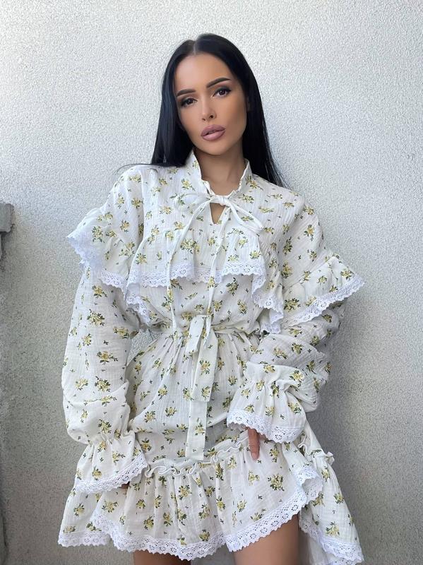 Ефектна сукня міні Сукня декорована бавовняним мереживом Матеріал: муслін Розмір: over size