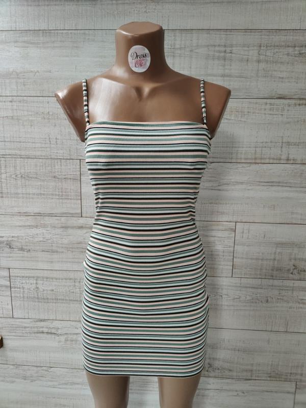 Плаття на брительках в рубчик. Интересное сочетание цветов полосок. Тянется. Размер S ПОГ-31см ПОТ-29см ПОБ-37см Длж.-62см
