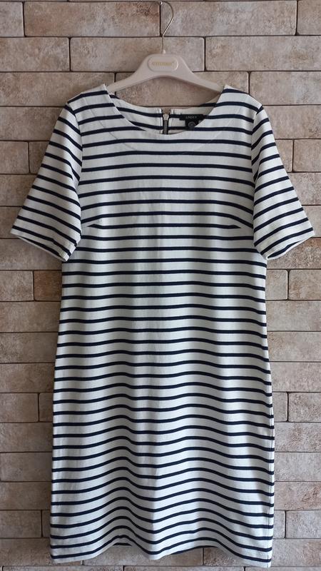 Літнє плаття в синю смужку бренда Landex. Акуратний круглий виріз горловини. Рукав короткий. Довжина вище коліна. Ззаду на невеликій блискавці. Фасон трапеція. Підійде розмір SL. Стан дуже ідеальний. Склад: 100% — бавовна. Made in Bangladesh. Заміри: за ОГ 45 см, ОС 48 см, довжина 91 см.