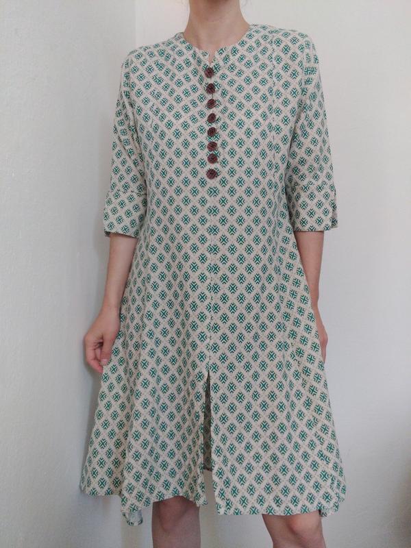 Винтажное натуральное платье а-силуета Boske. Красивое платье в зеленый геометрический принт. Деревянные пуговицы. Бирка со составом отсутствует, на ощущение лен. Стан - идеальный. Размер S-M (одет на s). Замеры: рукав - 40,5 см, полуобхват груди - 51 см, полуобхват бедер - произвольно, длина - 104 см. Отправка после 100% ПЕРЕДОПЛАТЫ По Новой почте Укр-почтой или наложенная плата с предоплатой 150 грн только Новой почтой. Возвращение обмена отсутствует.