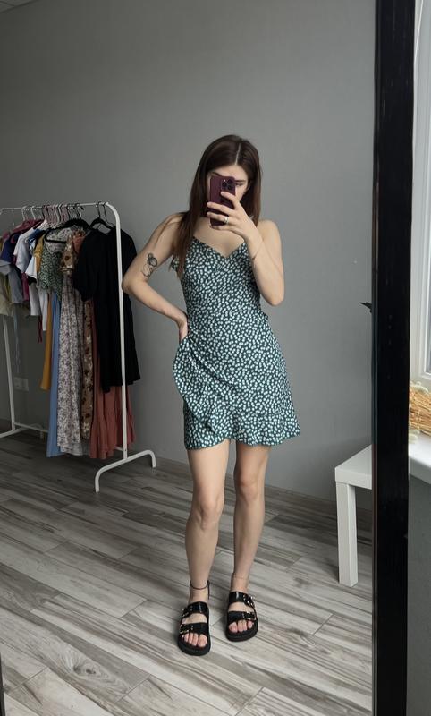Платье женское зелено в цветы на запах короткого платья на запах с