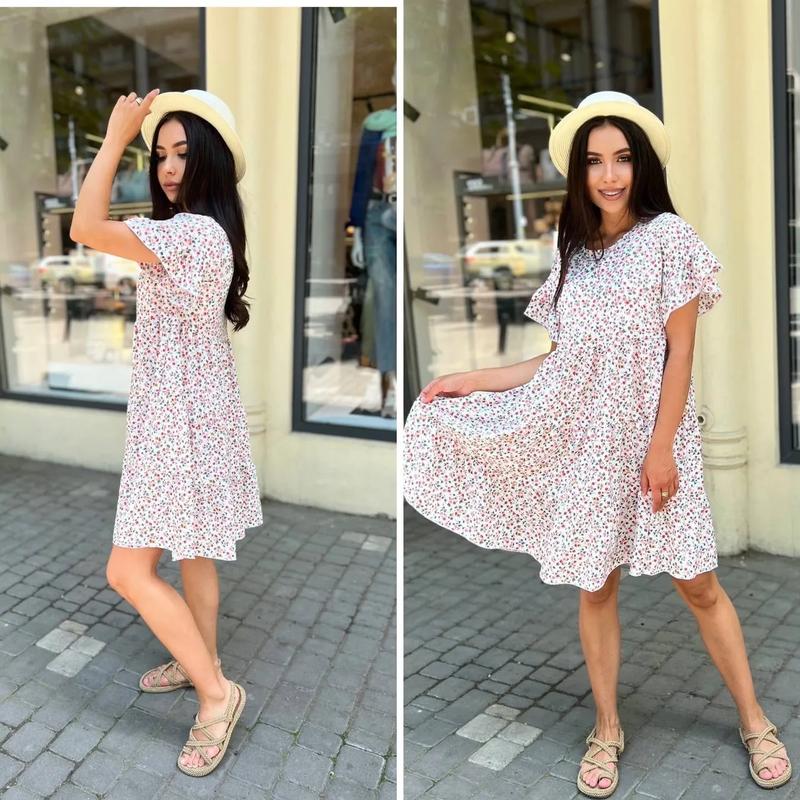 Сукня Производитель Украина Размер: 46-48 Тканина: софт, легка тканина, не просвічуєтся Цвет: молочный Замеры: Обхват груди 104 см Обхват бедер: свободный Длина рукава: 16 см Длина изделия: 87 см