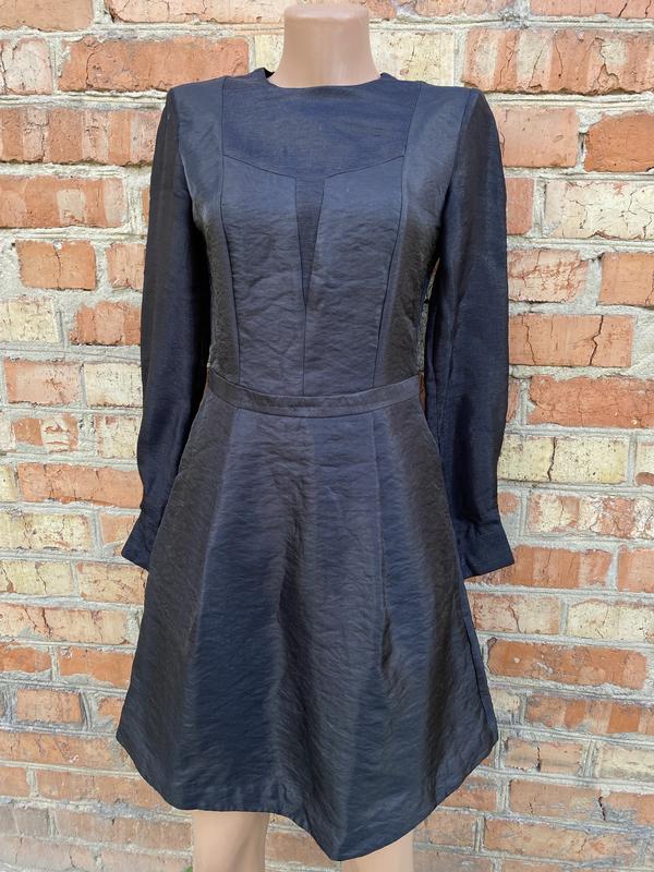 плаття чорного кольору 🚩трохи розкльошена спідниця 🚩по боках спідниці два прорізних кишені 🚩застібається ззаду на потаємну блискавку 🚩плаття з двох видів тканин різної структури: основа сукні щільна; рукави, груди і спинка з більш прозорої тканини в складі з шовком Розміри :34 підійде на 36 Заміри: Довжина 90 Пог 45 Рукав 58 Пот 35