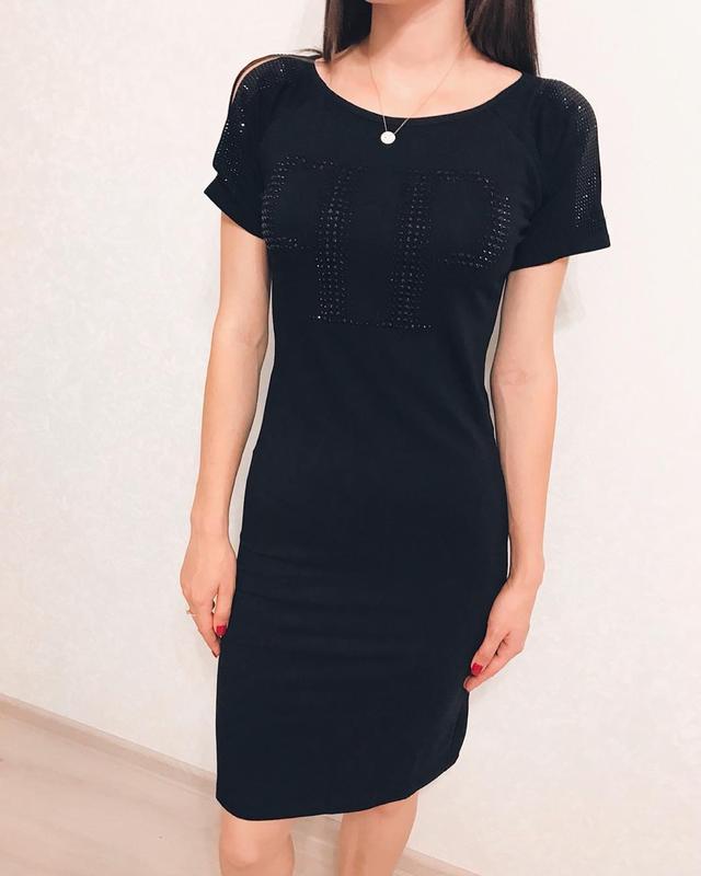 ▪️Чарівна і стильна жіноча чорна сукня з камінням - це ідеальне поєднання комфорту, якості та елегантності. ▪️Завдяки своєму складу з 95% бавовни та 5% еластану, воно забезпечує м'якість, приємне відчуття на шкірі та дивовижну посадку, яка підкреслить вашу жіночність. ▪️Сукня має чудову фактуру та приталений силует, що підкреслює всі переваги вашої фігури. ▪️Камені, розташовані на передній частині сукні, надають йому особливого шарму і створюють ефектний акцент, привертаючи увагу до вашого образу. ▪️Завдяки своєму складу з бавовни та еластану воно не тільки чудово зберігає свою форму, але й чудово себе поводить в пранні, що робить його зручним та практичним у використанні. ▪️Розміри - M,L