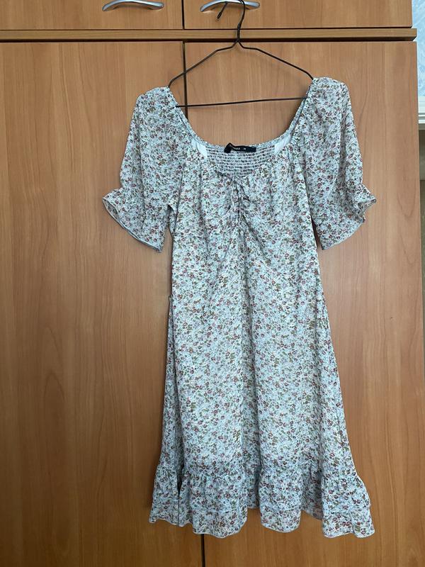 Сукня в квітковий принт ніжного кольору з шифону, розмір С-М Знизу рюши, рукава ліхтарики, є підкладка, гарний виріз