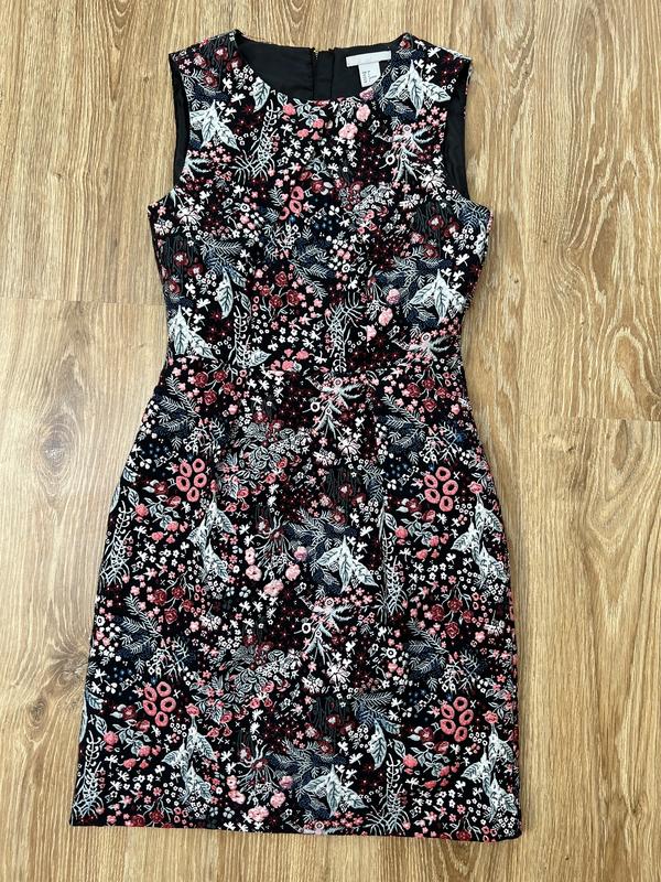 Плаття в квітковий принт. ( квіти на тканині вишиті) виглядає дуже чарівно. Гарно лягає по фігурі. Защіпається на замок позаду. Підійде на розмір - хс-с. Якщо потрібні заміри - пишіть.