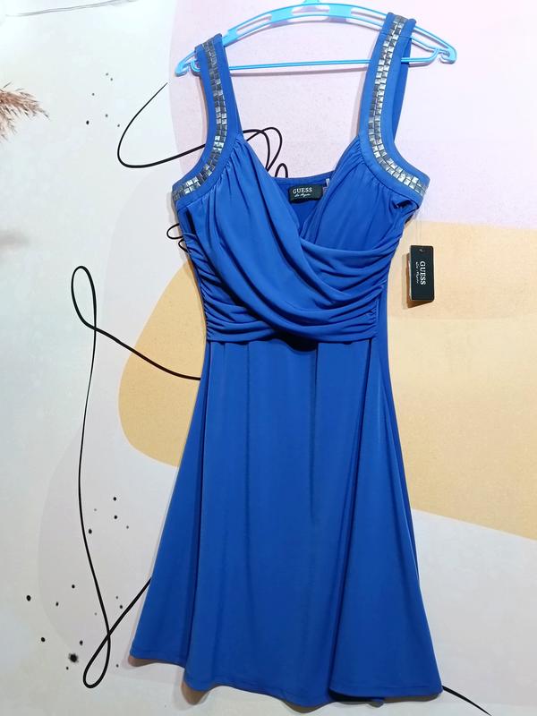 Нова міні-сукня з красивим декольте 😍 Guess 💙 Розмір S/M. З поролоновими вставками на грудях.