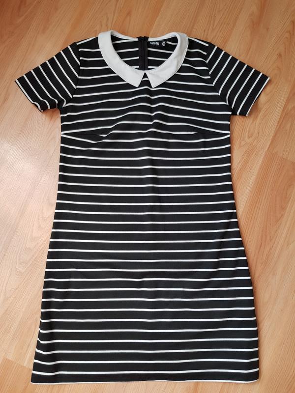 Стильна сукня, гарно тримає форму, довжина по середині спинки 81 см, плечі 34 см, пахви 43 см, талія 41 см, бедра 47 см, низ 52 см, потаємна блискавка 19 см (ззаду по середньому шву), рукав 18х6 см, ширина 14 см.