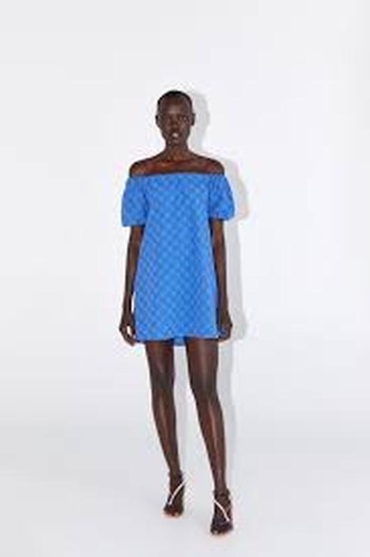 Красива блакитна котонова сукня ZARA в вибитий принт Розмір Л Заміри: ПОГ 52 см, талія та бедра вільні Рукав 22 см, Довжина 77 см Є підкладка Стан нового, без бумажної бірки