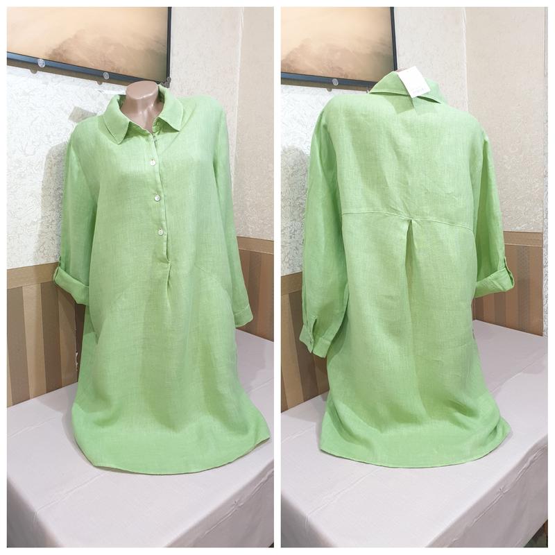 пог. 60. поб. 63. довжина 100. рукав 62. біцепс 19. плечі 46. з кишенями. 100%Linen. p. 14.