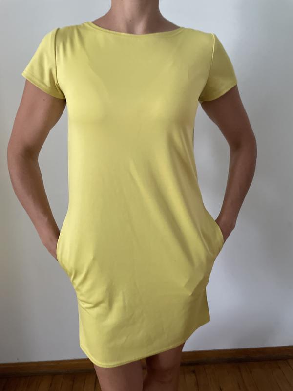 Класна неонова сукня з кишенями. Реальний колір ближче на другому фото.Плечі-36 см., пог- 42, бедра-45, довжина-83. Тканина тягнеться на 1-2 см.