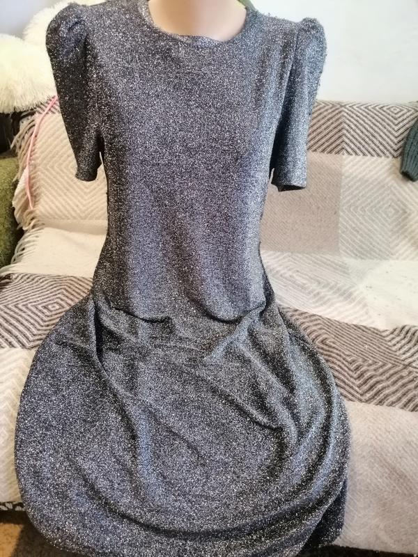 Дуже гарна сукня в хорошому стані. З дефектів є затяжки які легко повідрізати. Розмір 48-52. Є бірочка.