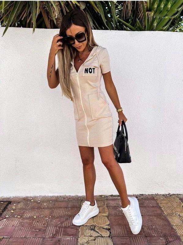Літня спортивна сукня на блискавці арт. fish. 1053 Розміри: 42-44, 44-46 Тканина: двонитка Кольори: чорний, білий, беж