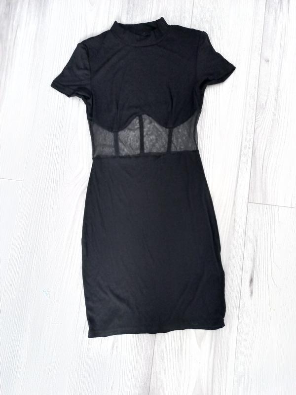 Сукня чорна з сіточкою на середині розмір Xs-S,але вона дуже добре тягнеться і добре сидить на M,тонкий матеріал Shein