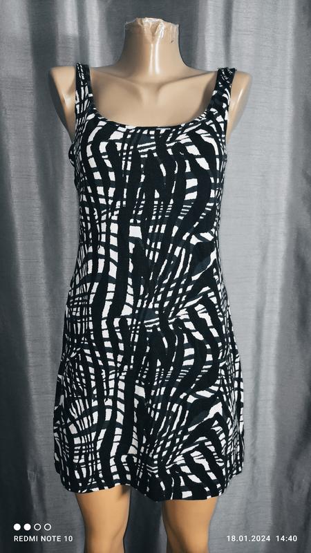 Дуже якісна річ, з приємним принтом — абстракція. Довжина — 85 см. НОГ — 42-52 см. НОТ — 41-50 см. НОС — 47-57 см. 95 котон, 5 еластан. Стан ідеальний.