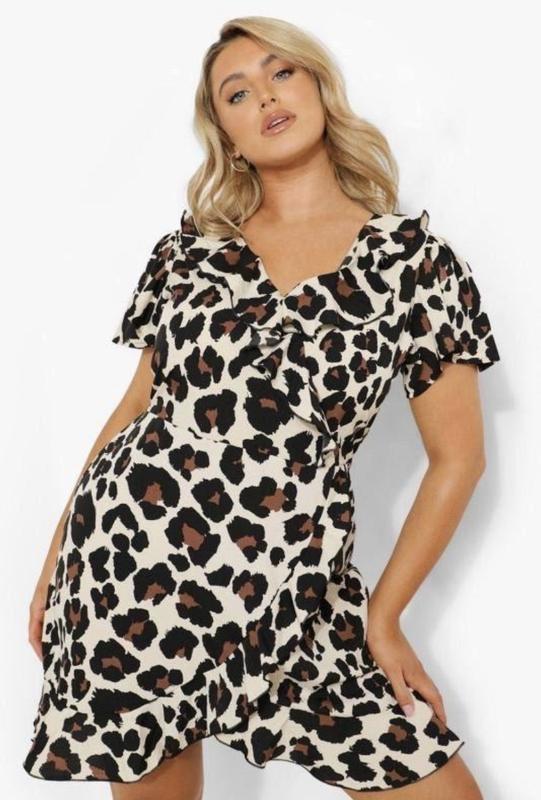Сукня в леопардовий принт boohoo 18р В ідеальному стані Заміри: Пог: 59, талія 52 (ззаду є поясок, ним можна затягнути талію на скільки потрібно), Поб: 60, довжина 93 Тканина легенька, та приємна до тіла