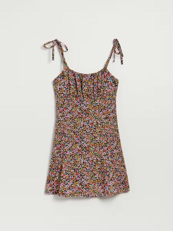 🌺 воно чудове, таке ніжне! - обожнюю такий фасон, завжди вдало сідає - трендове міні, завжди актуальний квітковий принт та класне поєднання кольорів - Замовила собі на сайті, промахнулася з розміром, йде на повнорозмірну М - дефектів немає, нове з биркою - 100% віскоза, легке та приємне - бретелі регулюються на потрібну довжину, можна зав'язати бантики - довжина без бретель - 67 см, ПОГ - 45-50, ПОТ - 40 см