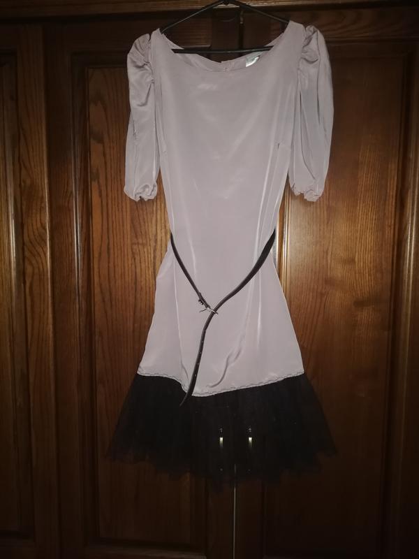 Гарна сукня, пудрового кольору. Внизу вуальна фіолетова сітка з блиском. Чудово поєднюється. Ідеального стану.