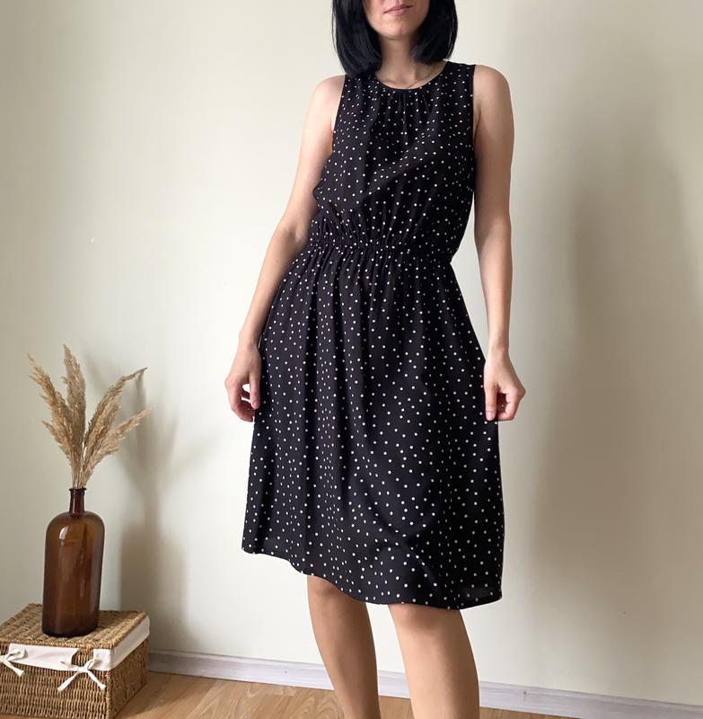 Сукня в горошок Tessentials, Р-р S, невелика М ПОГ 48 см ПОТ 32-38 см ПОС 59 см Длина 100 см ▫️▫️▫️ Одет на параметры: Рост 1.63 см, 80-70-93 ▫️▫️▫️ Открытка Укр и Новой почтой📦 ▫️▫️▫️ Прежде чем сделать заказ 🛍, хорошо сверьте свои параметры груди, талии, бедер с замерами в описании; сравните свой рост с длиной вещи ▫️▫️▫️ Ориентируйтесь по замерам в описании! Через дефис «-« это значит, что ткань тянется от и до! При отсутствии дефиса, это значит, что ткань не тянется!