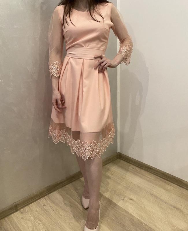 Плаття в дуже хорошому стані, колір персик, одягалась лише один раз • обхват грудей 89 • обхват талії 80 • в бедрах іде вільно