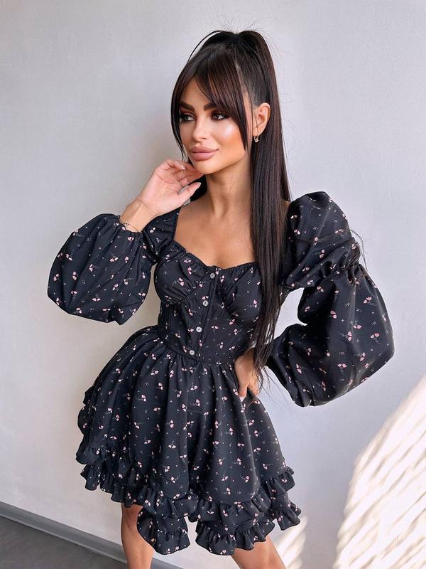 👆Лялькова сукня з пишною спідницею та корсетним верхом з ніжним квітковим принтом Тканина - софт Розміри : S, М Країна виробник Україна🇺🇦