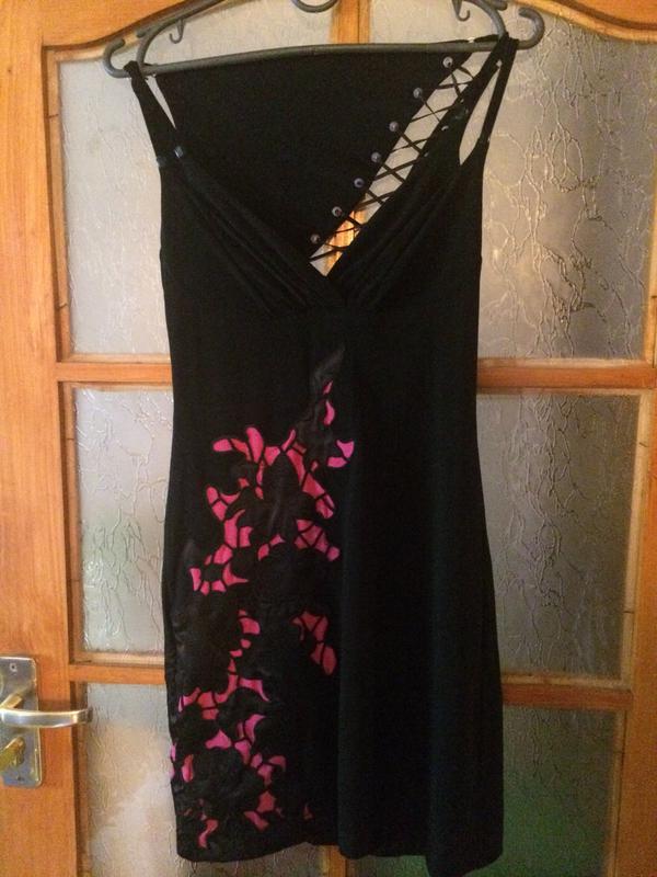 Плятячко чорного кольорурозовою вибивкою,дуже гарно зроблене,гарна спинка на шнурочках,дивиться дуже гарно