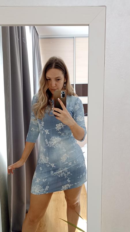 Дуже красива сукня в голубому кольорі принтована квітами, тканина м'яка, схожа на джинс.
