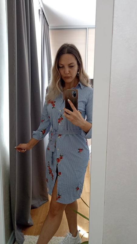 Дуже красива сукня-сорочка в полосочку, під поясок, з вишитими трояндами.