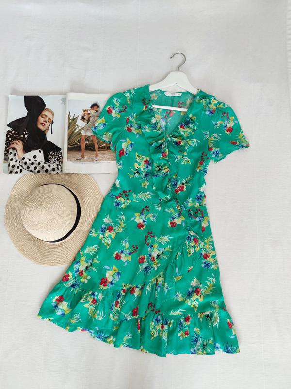 🌿зелене плаття в квіти від Mango, тканина віскоза Розмір:S Заміри:ПО грудей 42 см, ширина поясу 35 см, ПО бедер 47 см, довжина 83 см